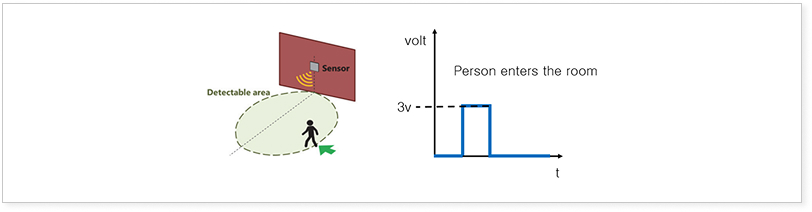 감지 영역 안으로 사람이 들어오는 것과 같은 움직임을 즉시 감지하여 신호를 출력합니다. 보안 시스템, 자동문, 스마트 조명 등 다양한 분야에