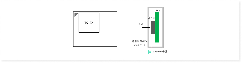 케이스와 레이다 모듈과의 거리는 2mm ~ 3mm 정도가 적당(케이스 재질에 따라 다름)